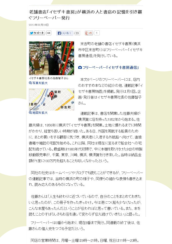 当店のフリーペーパー『イセザキ書房通信』が紹介されました! ヨコハマ経済新聞HP 掲載記事:ここ←クリックすると読めます。 2010
