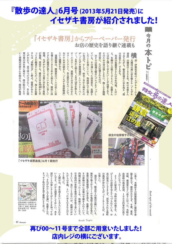 フリーペーパー『イセザキ書房通信』を紹介していただきました! 「今月の本トピ」 掲載記事:ここ←クリックすると読めます。 2013